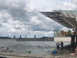 Ich habe also mein Rad und die Beutel morgens gegen 12 Uhr eingecheckt und bin erstmal zum Mittagssnack zurück in das Apartment gegangen. Um 14 Uhr hieß es dann endlich Neo und Badeschlappen an und auf zum Startbereich. Nach einem kurzen Einschwimmen im Hafenbecken habe ich mich dann in der Startschlange eingereiht.