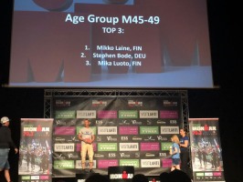 Nun ging es an den letzten Teil. In Lahti sind das 2 große Runden, die sind zwar etwas verwinkelt, aber trotzdem sehr gut zu Laufen, nahezu durchgehend Asphalt mit kurzen Schotterabschnitten. Die ganze Strecke ist perfekt abgesperrt, sehr gut beschildert und die Verpflegungspunkte super besetzt. Jeder Helfer war sogar mit einem Leibchen ausgestattet, was beschrieb, was derjenige ausschenkt – wirklich top! Dank der super Umstände konnte ich meinen Ziel-Laufschnitt um die 4:05 durchgängig halten und mir somit den zweiten Platz in meiner AK sichern – ein Ergebnis mit dem ich am Ende sehr zufrieden war, da die AK zwar recht lokal, aber doch mit diversen Hawaiiteilnehmern stark besetzt war.