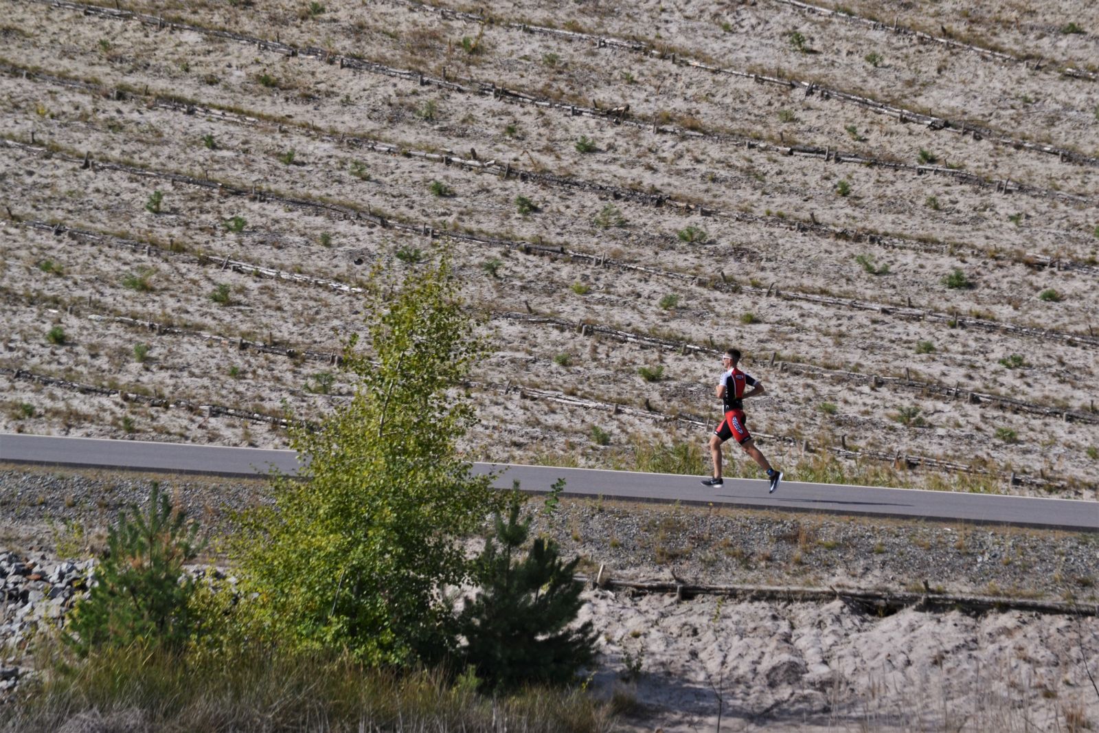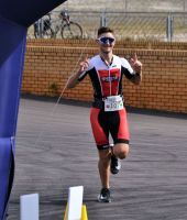Gemeinsam mit dem Führenden ging es für mich auf die Laufstrecke – dieser hatte allerdings schon eine Runde Vorsprung. Eine Runde blieb ich an ihm dran, dann setzte ich mich von ihm ab. Die Strecke bestand aus drei sehr anspruchsvollen Runden, wobei circa 80 % über tiefe Sandwege führte, die das Laufen natürlich erheblich verlangsamten. Trotzdem hatte ich als Crossläufer meinen Spaß und fühlte mich unterwegs sehr locker. Vielleicht hätte ich hier noch ein bisschen mehr Gas geben müssen, aber das permanente Laufen am Anschlag auf der Kurzdistanz ist einfach nicht mein Ding. Zu meiner Freude war die Laufstrecke auch ziemlich genau vermessen. Nach 41:30 Minuten lief ich durch den Zielbogen direkt unter der F60.