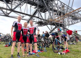 Die Berlin-Brandenburger Meisterschaften der Kurzdistanz werden dieses Jahr beim F60 Triathlon ausgetragen. Am Kulturdenkmal der F60 Kohleförderbrücke locken ein sauerer See zum Schwimmen, eine verkehrsfreie Pendelstrecke zum Rad fahren und ein paar sandige Hügel zum Laufen. Sisu ist durch Oscar, Carl, Norman und mir vertreten.