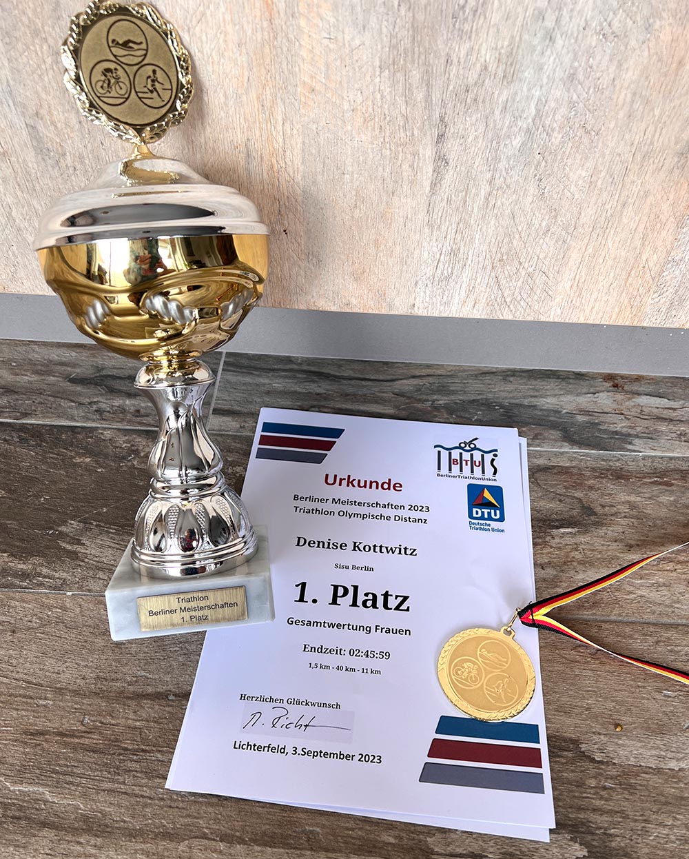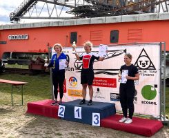Als Gesamt-Sechste darf ich noch auf das Siegertreppchen, die eigentlichen Überraschungen kommen aber bei der Auswertung der Meisterschaft. Tatsächlich bin ich mit meiner Leistung heute Berliner Meisterin geworden, Carl und Norman dürfen oben aufs AK Meisterschaftstreppchen. Oscar hat keine Lizenz, sonst wäre er auch dabei gewesen. Vielleicht ist das Rennen etwas weit weg von Berlin, aber ich finde die Anreise lohnt sich.
