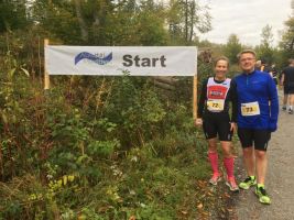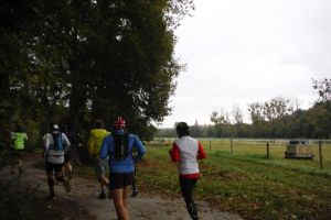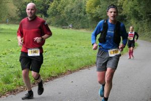 Wir traben fröstelnd zum Start, plauschen noch mit dem ein oder anderen – fast alle kennen sich hier aus. Ist ja auch ein Lauf von Läufern für Läufer. 12 Sportvereine sind an der Organisation beteiligt, bei etwa hundert Teilnehmern kommt also ein Großteil aus diesen. Der Startbereich besteht aus einem Schild, der Startschuss wird per Handykommando an die Zeitnahme durchgegeben. Auf geht’s!