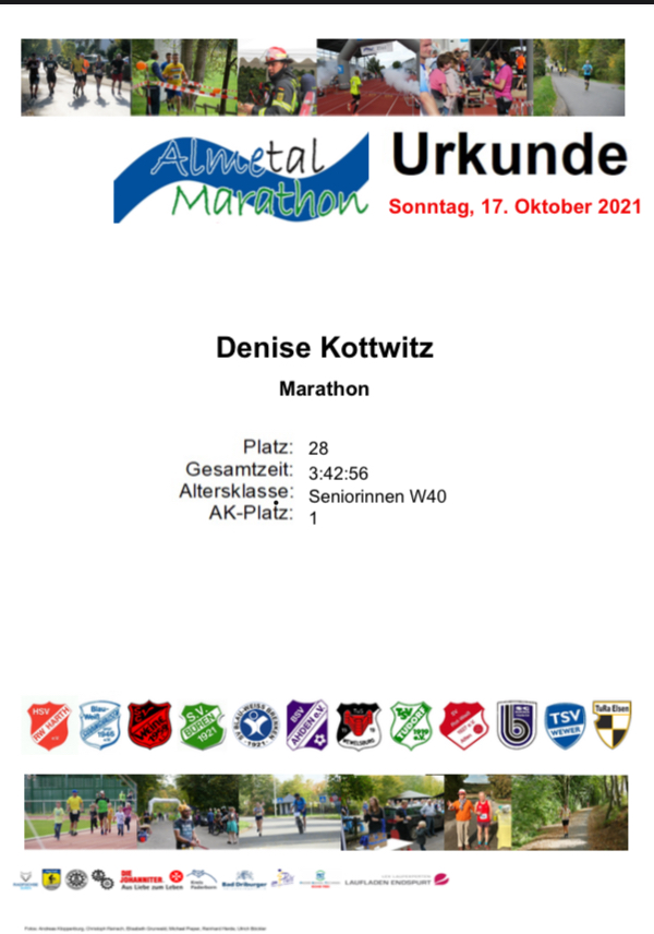 Optimismus und gute Laune kommen jedoch langsam wieder: 1) Die Uhr ist bei 3h43 stehen geblieben, da die Strecke etwas kürzer war – ist es mit etwa 3h45 immerhin mein drittschnellster Marathon gewesen. Von dieser Zeit träumen viele. 2) Ich bin Gesamtdritte und lande erstmals bei einem Marathon auf dem Podium (wenn auch nur theoretisch). 3) Marathonbestzeit (v.a. ohne Einbruch) bin ich mit deutlich weniger fokussiertem Lauftraining nach einer guten Triathlonsaison gelaufen. Na, wenn das keine Erkenntnis für die nächsten Jahre ist!Mal abgesehen von meiner eigenen Performanz kann ich dem Lauf nur drei Daumen hoch geben: super organisiert, schöne Strecke, Bombenstimmung und tolle Leute. Ohne Coronabeschränkungen wäre es sicher noch eine schöne Zeit im Zielbereich geworden. Jetzt warte ich auf die Post und die wohlverdiente Finishermedaille... und ein bisschen noch auf die Erkenntnis, was ich beim nächsten Mal besser machen könnte.