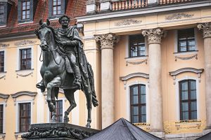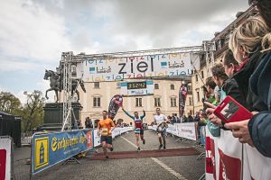 Nachdem es am Abend zuvor kräftig geregnet hatte, ging es Sonntag 9 Uhr am Bauhausmuseum los, erst durch die Stadt, dann auf zwei verschiedenen Runden aus der Stadt raus und wieder rein. Das Ziel für den halben und den vollen Marathon war auf dem Platz der Demokratie neben der Reiterstatue von Herzog Carl August von Sachsen-Weimar-Eisenach und der nach einem kulturell verheerenden Brand von 2004 wieder restaurierten weltberühmten Anna-Amalia-Bibliothek.