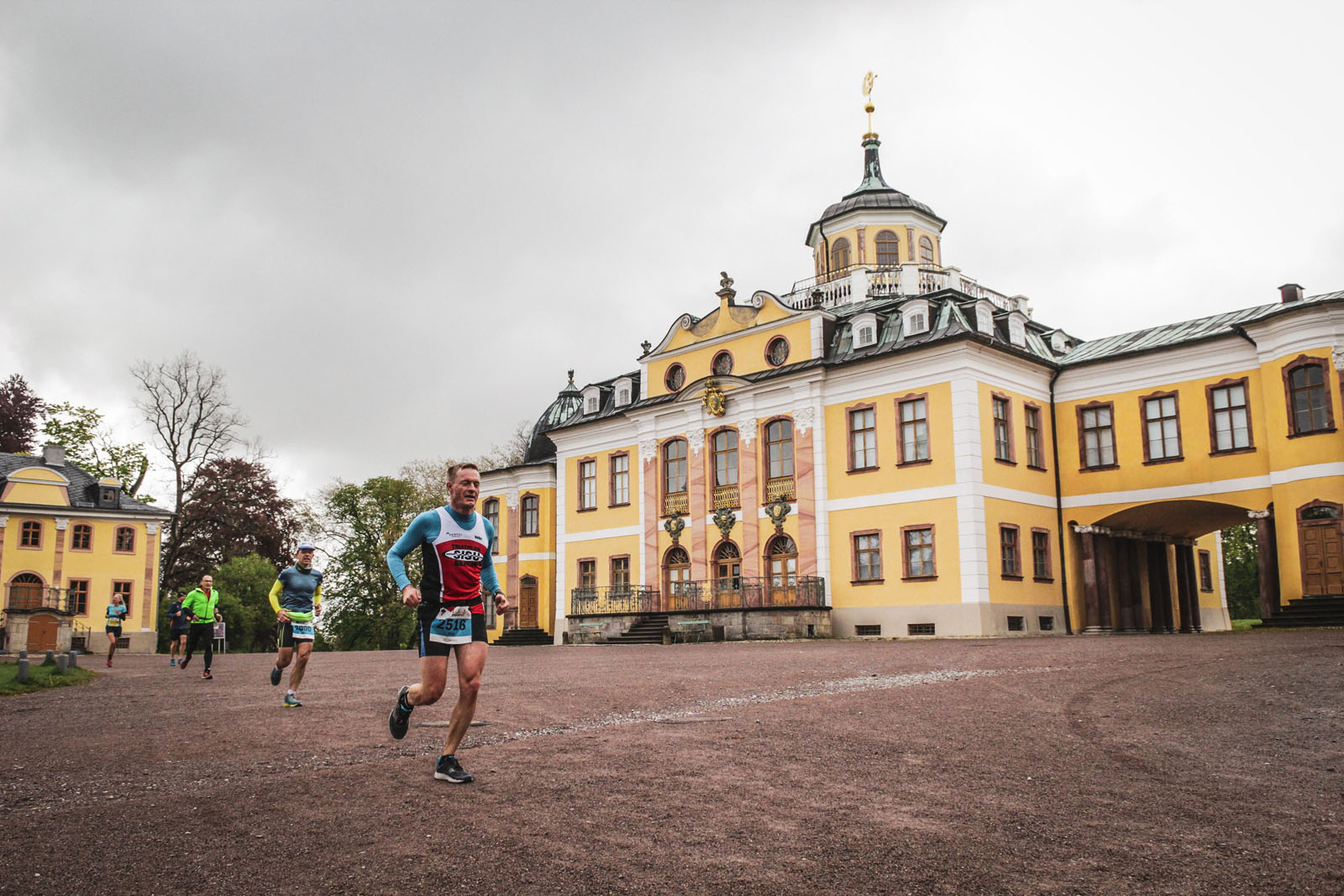Doch auch ohne die Auszeiten gab es jede Menge Kulturelles im Vorbeilaufen zu sehen und zu hören. So ging es auf den ersten Kilometern durch das Stadtzentrum, am Deutschen Nationaltheater vorbei von dessen Balkon ein einsamer Trompeter aus Bizets Carmen spielte. Es ging an Schillers als auch Goethes Wohnhaus vorbei, am Frauenplan improvisierte ein Pianist auf einem Flügel auf einer rollenden Plattform. Natürlich ging es auch am Stadtschloss vorbei durch den Park an der Ilm mit Goethes Gartenhaus und der Einlauf in die Stadt erfolgte nach beiden Runden durch den Park Belvedere und am gleichnamigen Schloss vorbei.