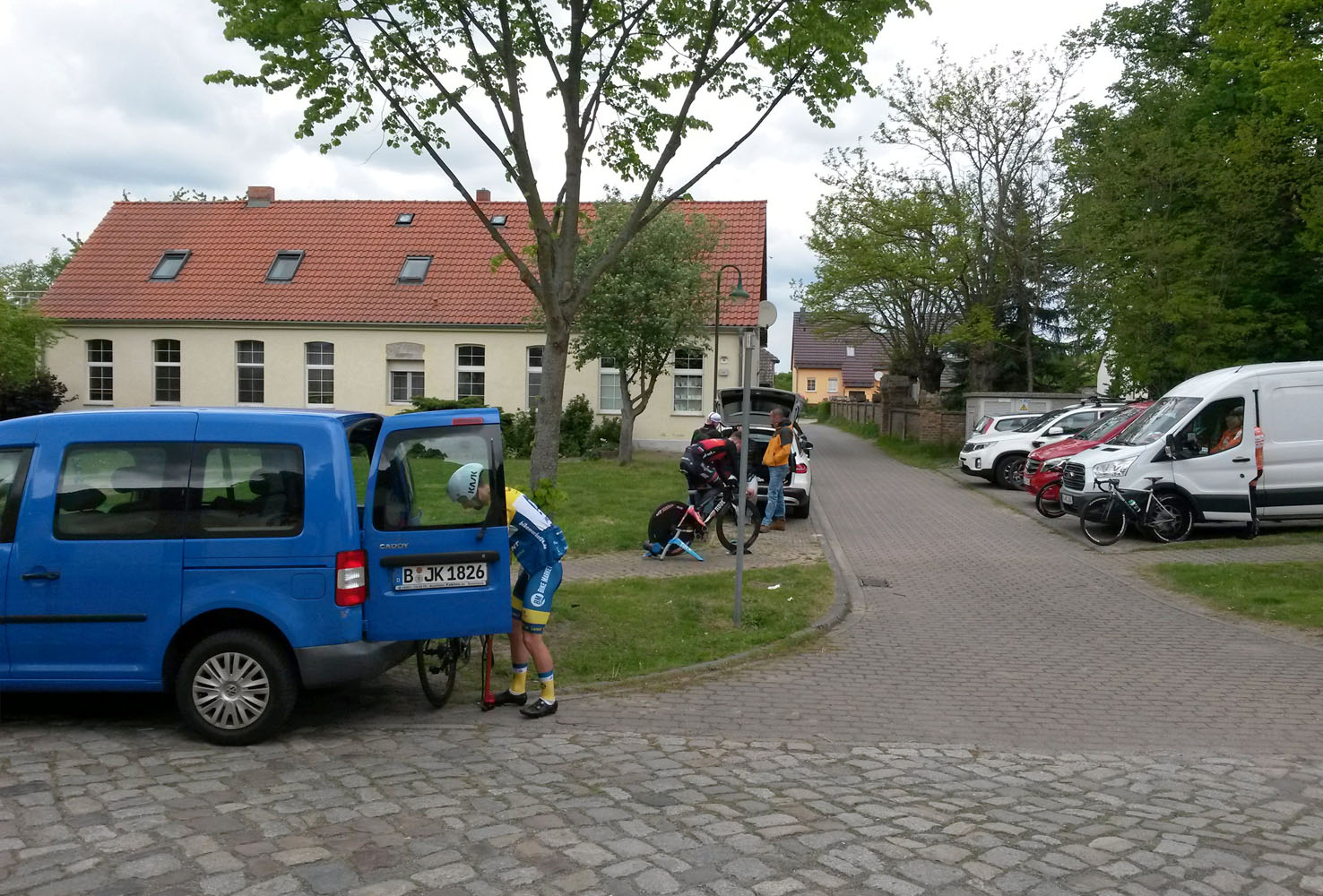 Der 4. Mai schien ein günstiger Zeitpunkt ohne Konflikte mit anderen Terminen zu sein, daher meldeten wir uns kurzentschlossen an (Ingo, Sonja, Domenic und ich). Ganz funktional wird online gemeldet und am Renntag einfach vor Ort bar gezahlt. Nachmeldungen gibt's nicht, dafür vorab die komplette Starterliste mit konkreten Startzeiten. Zu unserem Erstaunen standen am 1. Mai fast 500 Teilnehmer auf der Startliste, begonnen bei Mädchen und Jungen der U11 bis zur Elite und schließlich uns Jederleuten, die ohne Lizenz und als Berliner natürlich nicht an der Landesmeisterschaft teilnehmen können. Erster Start würde morgens um 9 Uhr sein, wir wären kurz nach 15 Uhr dran (!), dazwischen praktisch pausenlos Einzelstarts im Halbminuten- oder Minutentakt je nach Startklasse, das klingt mehr nach Großveranstaltung als gedacht.