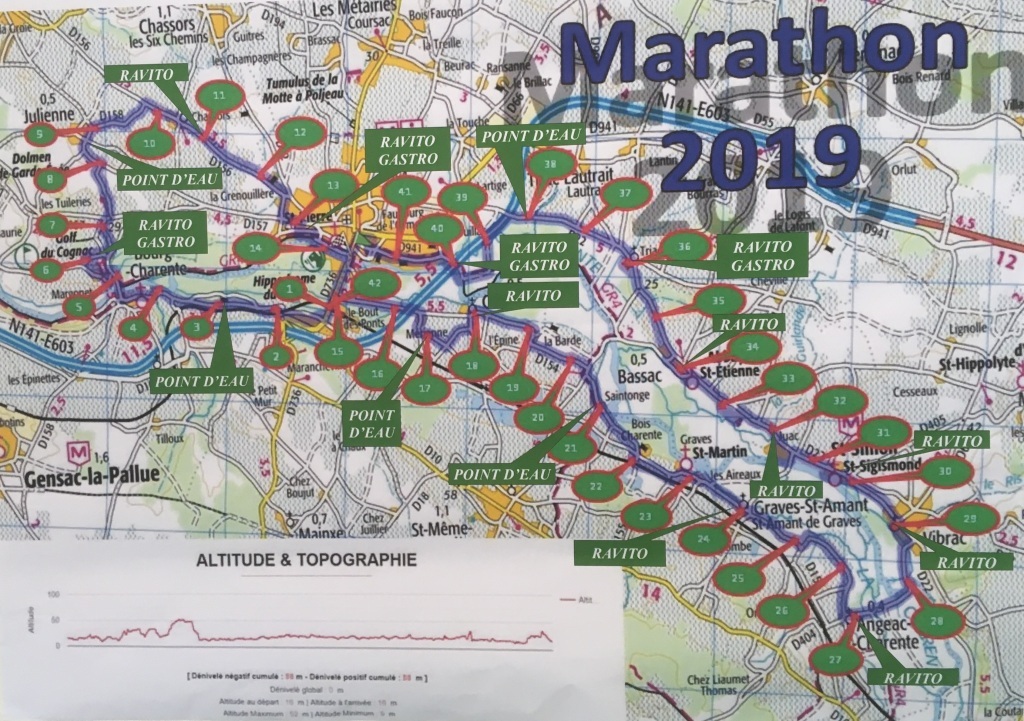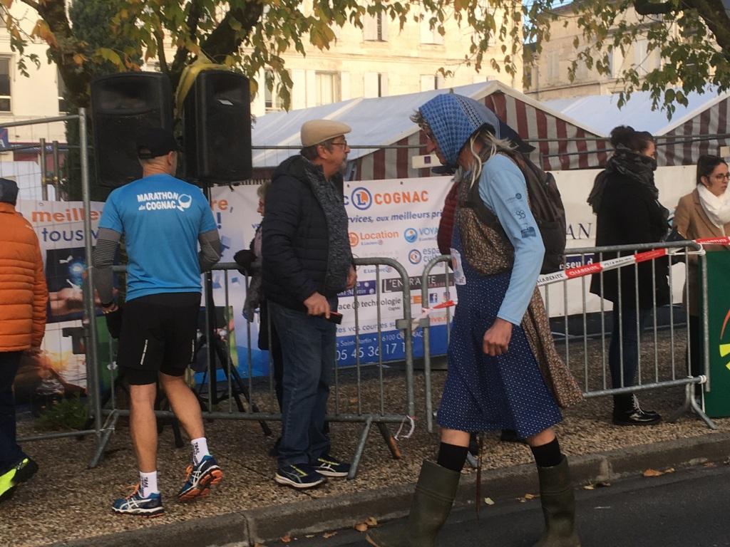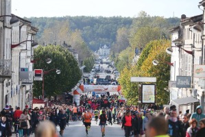 Wir fahren am Vortag nach Jarnac, um die Startunterlagen abzuholen und uns die Gegebenheiten anzuschauen. Am Start/Zielbereich herrscht reges Treiben und viele kleine Schilder weisen den Weg. Als wir allerdings in der Straße angekommen, wo es die Unterlagen geben soll, sind wir ratlos. Da steht nur ein Schild ("Dossards"), das in beide Richtungen zeigt. Wir fragen ein paar Einheimische: die einen meinen links, die anderen rechts. Wir wählen die linke Variante – erfolgreich.