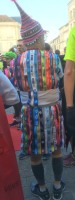 Am Rennmorgen ist trockenes Wetter vorhergesagt, dafür ist es kalt. Mit drei Grad eigentlich sehr kalt, aber blauer Himmel und Sonnenschein. Das Parken ist durch Einweiser und Polizei gut geregelt, allerdings können wir das Auto nur ca. 2 Kilometer vom Start abstellen. Somit hat sich das Einlaufen zum Start auch geregelt. Dort ist es recht lustig: man sieht viele Verkleidungen. Besonders hübsch finde ich die Gruppe Kellner, die mit Weste und Fliege an den Start gehen. Auch schön der Läufer, der sich ein Kleid aus Medaillenbändern gebastelt hat. Der Typ mit den Gummistiefeln geht wohl nur auf die 11,5 Kilometer Strecke, die neben dem Halbmarathon und ein paar Kinderläufen am Nachmittag auch mit angeboten wird.