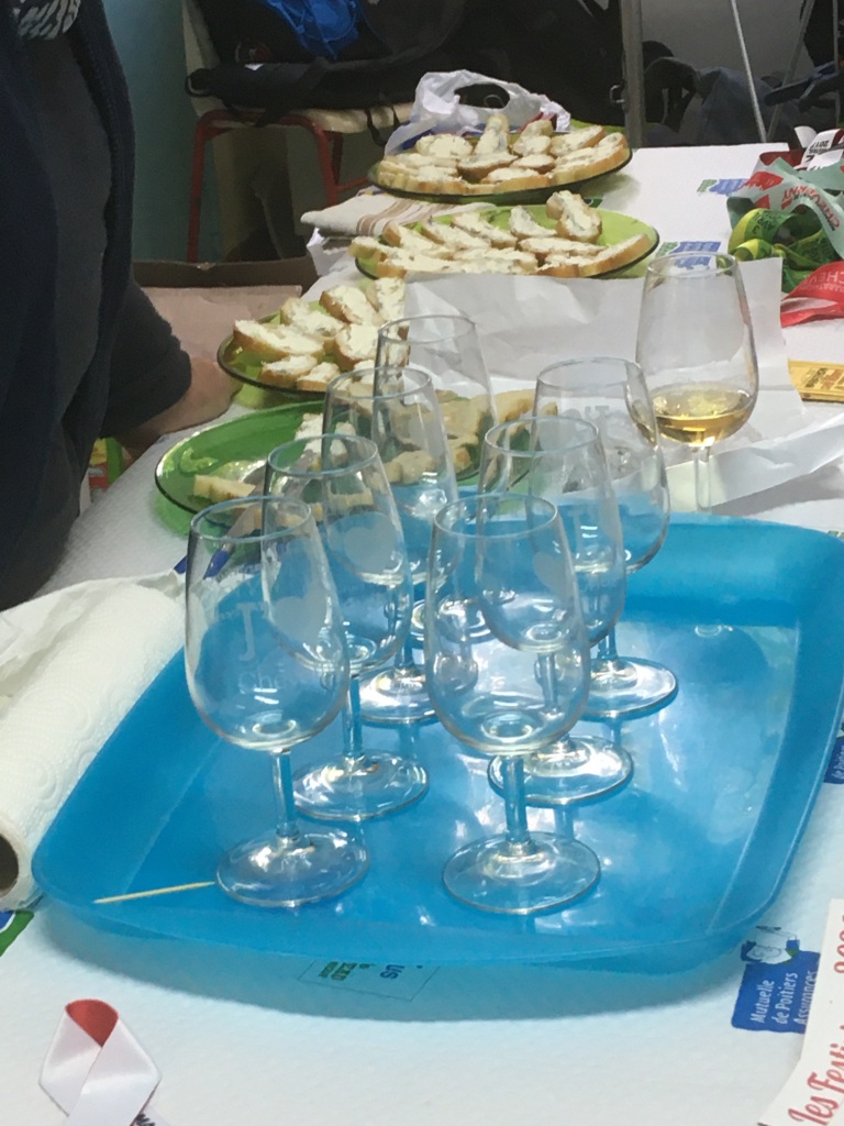 In einem Nebenraum findet die verrückteste Marathonmesse statt, die ich je gesehen habe. Mit einem breiten Angebot an Wein und Likör wird man zu den Ständen gelockt, wo sich vor allem Laufveranstaltungen der Region präsentieren. Wir lehnen den Alkohol ab, was aber den Präsenter des Marathon du Medoc nicht davon abhält sich selbst dreimal nachzuschenken, während wir uns unterhalten. Beim Marathon du Blaye ist eine Flasche Rotwein, eine Flasche Weißwein und der Genuss von drei Austern im Startgeld enthalten. Wir interessieren uns eher für Fragen wie Teilnehmerzahl und Streckenführung und ernten damit mitleidige Blicke, erhalten aber immer ausführliche Informationen und beginnen schon vor dem Start den nächsten Lauf ins Auge zu fassen.