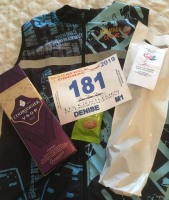 Schnell erhalten wir unseren Startbeutel: neben der chipintegrierten Nummer, etwas Werbung und einem Keks ist in einem weißen Plastiksack ein Weinstock zum Einpflanzen drin, und – wie sollte es anders sein – eine Flasche Cognac!