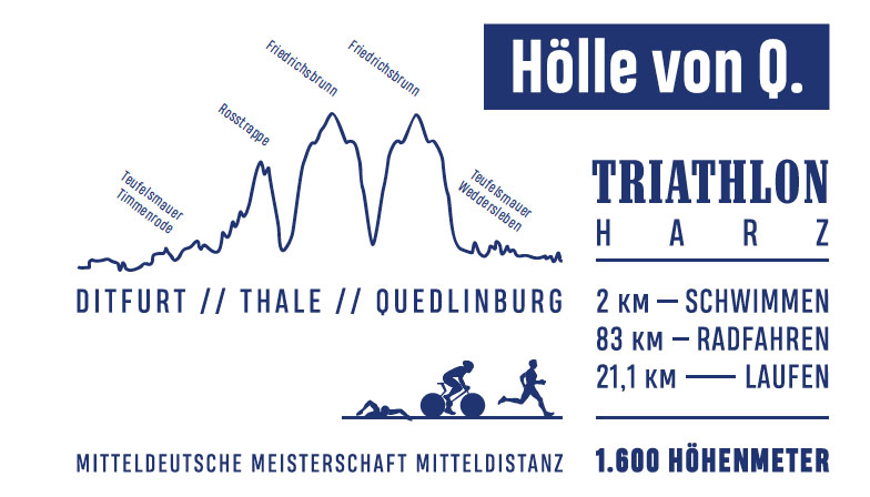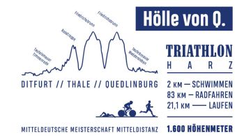 Nachdem ich nun ein paar Wettkämpfe als Sisu absolviert habe, folgt hier ein kleiner Bericht über meinen Heimattriathlon. Zuerst einmal etwas zum Namen und Wettkampf: Es handelt sich hierbei um einen Mitteldistanztriathlon mit ordentlich Höhenmetern. Die Radstrecke ist mit ca. 1400 hm bestückt, und auf der Laufstrecke sind noch einmal ca. 200 hm auf 21 km zu bewältigen. Hinter der "Hölle" im Titel verbirgt sich aber nicht nur eine zum Teil passende Beschreibung des Wettkampfs, sondern im eigentlichen Sinne ist das schlichtweg der Name der Straße des letzten Laufstückes. Das "Q" steht für Quedlinburg, dem Zielort. Also eigentlich handelt es sich bei dem Titel nur um eine Straße in Quedlinburg oder eben um einen knüppelharten Triathlon.