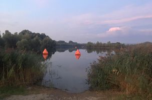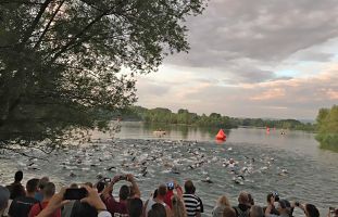 Der Startschuss für die Einzelstarter fiel um 6:35 Uhr an einem kleinem See unweit von Quedlinburg. Die Bedingungen waren an diesem Tag eigentlich optimal, um Sport zu machen, so herrschten morgens 20 Grad Außen- und ca. 23 Grad Wassertemperatur. Man muss, um auf die 2 km Streckenlänge zu kommen, den See im Grunde einmal umschwimmen. Das machte die Orientierung natürlich ein wenig einfacher. Mit meiner Schwimmzeit von 34:46 Minuten war ich sehr zufrieden. Allgemein muss ich sagen, dass der Sprung, den ich im Schwimmen gemacht habe, seitdem ich vor ca. einem Jahr zu den Sisus gestoßen bin, enorm ist. Großer Dank also an dieser Stelle an alle Schwimmtrainer!