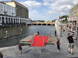 Am Ende der Schwimmsektion dann direkt das erste große Highlight: Der Schwimmausstieg ist kurz hinter einer kleinen Brücke und führt in den vorderen Teil der Binnenalster. Dieser Flussabschnitt war umrandet von hunderten Zuschauern, welche über die Ränder ins Wasser gejubelt haben. Einfach Wahnsinn! Aber hier hat es noch nicht geendet, weil kurz nach dem Wasserausstieg nochmal so viele Zuschauer die Schleuse zur Wechselzone gesäumt haben. Wenn das nicht motiviert!