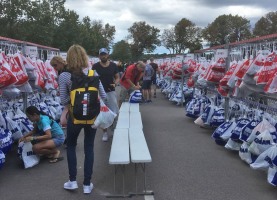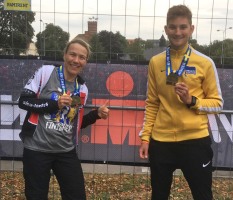 Das Einchecken am Freitag geht dagegen total unkompliziert und wir laufen noch Teile der Strecke in der Innenstadt ab, um eventuelle Treffpunkte mit meinem Mann auszumachen. Außerdem will ich noch ein paar Beweisfotos mit Michas Sisu Fahne machen, aber der Wind ist so heftig, dass diese schwer zu halten ist. Eine kleine Vorahnung für den nächsten Tag...