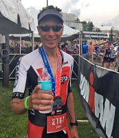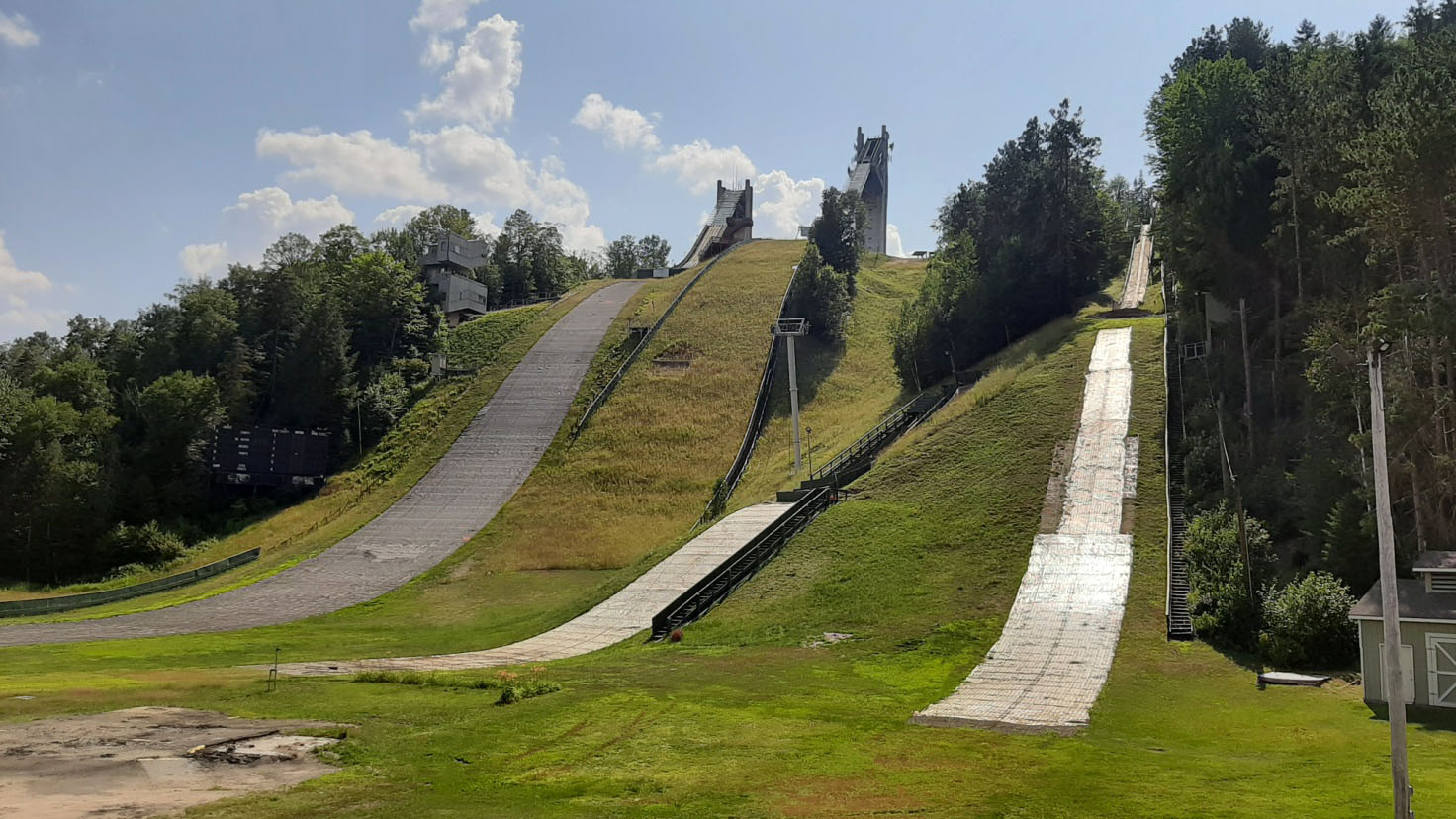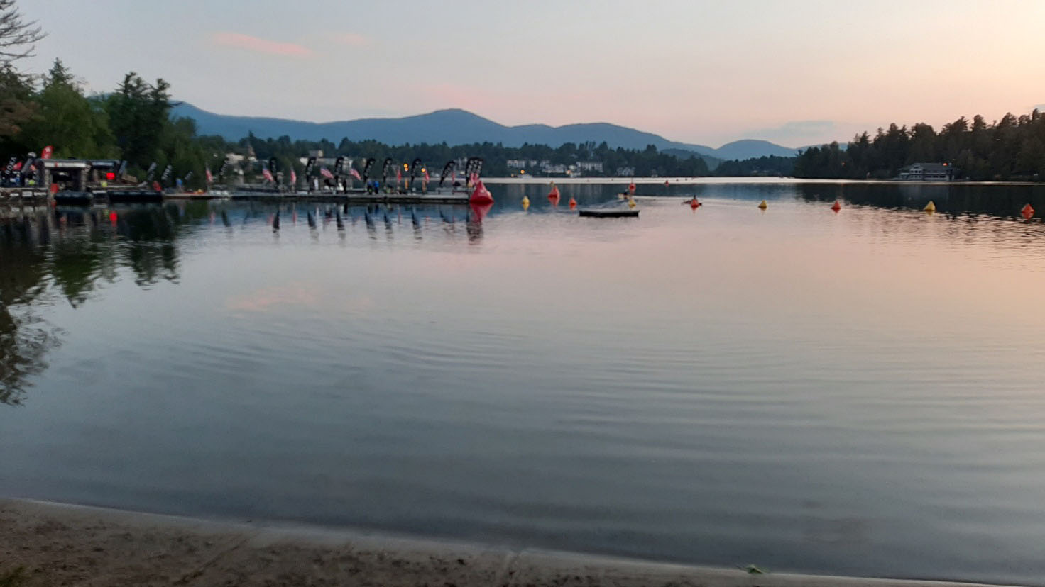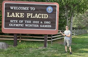 So ging es also nach wenigen Tagen in das nördliche New York nach Lake Placid. Wir hatten viel Zeit mitgebracht und in acht Meilen Entfernung in Sarranac Lake ein tolles Ferienhaus direkt am See gemietet. Die Vorbereitungen im Vorfeld der Veranstaltung lösten sich mit touristischen Unternehmungen ab: Abholung der Startunterlagen, Gipfelbesuch des Whiteface Mountain mit tollem Blick in die Umgebung, Begutachtung der Ski-Sprungschanzen, Athleten-Briefing, Testschwimmen/Baden im See, Besuch des Olympischen Museums und natürlich der Bike-Checkin. Eine Testfahrt der Radstrecke hatte ich mir auch nicht nehmen lassen. Neben der phantastischen Landschaft war diese auch aus sportlicher Hinsicht attraktiv: Keine zu steile Steigungen oder Gefälle und ein ausgezeichneter Straßenbelag. Das machte Mut für das Rennen! Als Gesamtzeit hatte ich mir vorgenommen, unter 11 Stunden zu bleiben. Das war mir schon im Vorjahr in Zürich gut geglückt, und ich war zuversichtlich, die anspruchsvollere Strecke durch das bessere Training ausgleichen zu können.