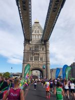 Donnerstag Nachmittag war Abflug vom BER. Das Hotel war sehr zentral gleich neben dem Tower und der Towerbridge. Freitag Morgen um 7:00 Lockerungslauf mit Irina Mikitenko (die hat den Londonmarathon schon zweimal gewonnen). Temperaturen 10 bis 12 °C, leicht nebelig, unser deutsches Grüppchen ist 7 km ganz locker gelaufen mit viel geschwätzigem Erfahrungsaustausch. 10 Uhr mit den Öffentlichen zur Messe, Startnummer abholen, das Wetter war inzwischen fantastisch. Für die Startnummer musste ich nicht anstehen, das ging sehr fix.