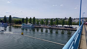 Schwimmen sollte in der Mosel stattfinden: 500 m gegen den Strom, 1000 m mit dem Strom und dann noch einmal 400 m entgegen. Warm-up im Schwimmbad nebenan – das hab ich direkt schon im Neo gemacht. Im Startbereich hab ich mich im Feld der 30-35 Minuten eingeordnet. Ich wäre gerne um die 30 min geschwommen, es würde aber wahrscheinlich ne 32er Zeit werden. Aber gut, mit dem was du hast einfach rein ins Wasser.