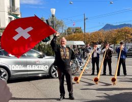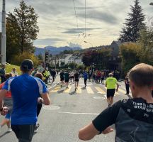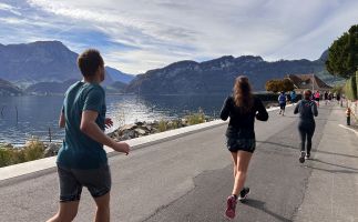 Ich laufe zwar ambitioniert los, aber nicht auf Maximum. Und schon geht die Musikshow los. Blaskapelle, Dixieband, Rock, Alpenhörner… gerade hat man eine Kapelle passiert, hört man schon die Töne der nächsten. Die Strecke ist recht voll, aber durch die Startwellen kann man gut laufen. Stimmung an der Strecke ist wirklich der Wahnsinn. Nicht nur in der Innenstadt sondern auch am entferntesten Punkt. Wobei ich den Blick auf den See und auf die Berge auch in vollkommender Stille genießen könnte. 250 Höhenmeter klingen unbedeutend auf der Strecke, machen sich dann aber doch in zwei mühsamen Anstiegen bemerkbar.