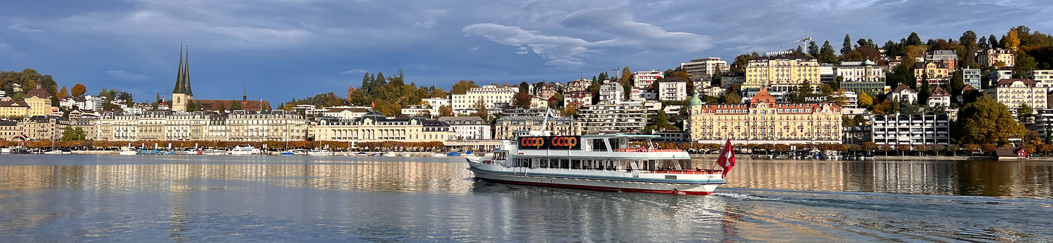 Luzern zeigt sich mit blauem Himmel, strahlendem Sonnenschein und Temperaturen bis über 20 Grad am letzten Oktoberwochenende von der besten Seite. Das funkelnde Wasser des Vierwaldstättersees und die erhabenen Berge bieten eine fantastische Szenerie.