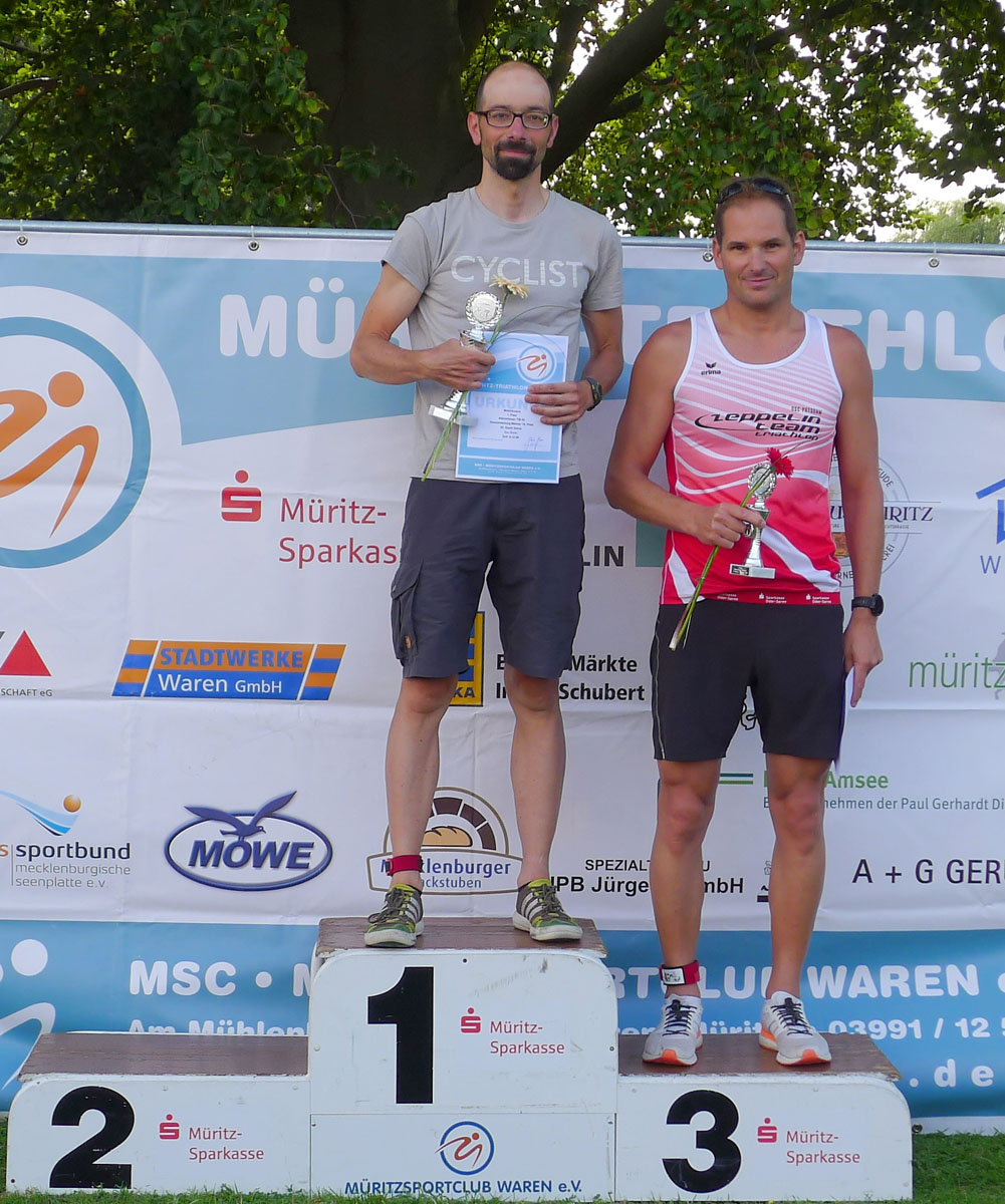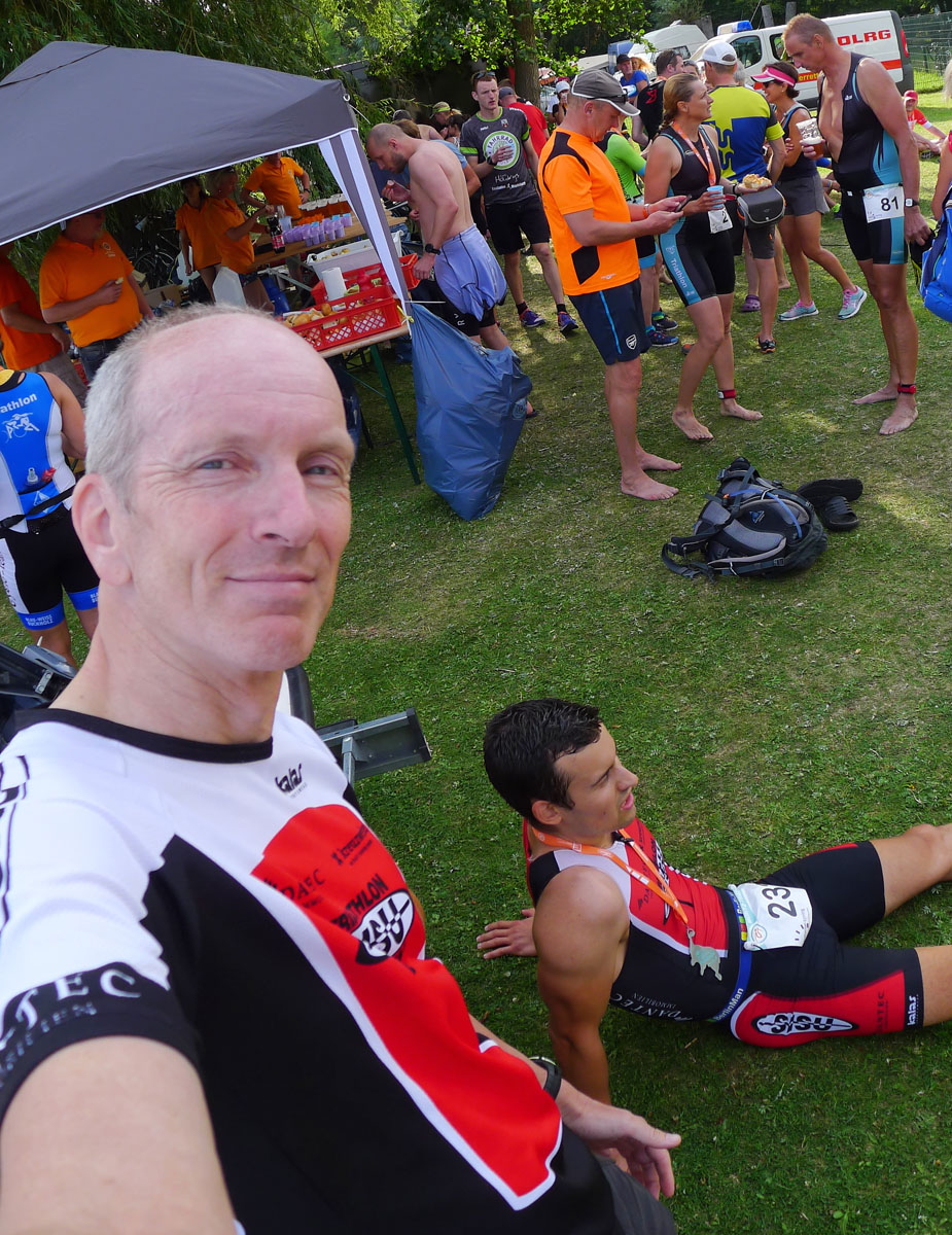 Nein, der Müritz-Tri war perfekt organisiert wie immer, und auch das Wetter war eigentlich gut – keine übermäßige Hitze, dafür allerdings eine kräftige Brise aus Nordost. David war fit und motiviert und hat sogar seine AK gewonnen (M45 mittlerweile). Mathias hat das Lauftraining wieder aufgenommen und sich gut geschlagen. Domenic hat gewusst, worauf er sich einlässt. Aber für mich war es gefühlt ein komplettes Desaster.