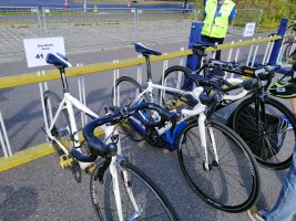 Jochen war der zweite Starter und musste nun erstmal von der Ziellinie 200 m zur Schwimmhalle laufen. Dort musste er dann die 400 m alleine bewältigen, da der Abstand zur Konkurrenz zu groß war. Beim Radfahren musste auch er sich alleine über die 10 km kämpfen, da die Gruppe zu weit weg war. Erst zum Ende konnte Jochen eine halbe Runde Windschatten nutzen, um sich dann auf das Laufen zu konzentrieren. Er holte zum vorletzten auf und übergab mit 5 Sekunden Rückstand an...