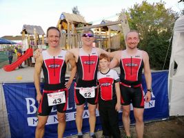 Rado, der auch eine ordentliche Schwimmleistung ablieferte und souverän in die Wechselzone kam. Beim Radfahren musste auch er 8 km alleine kämpfen, bis er auf den letzten auffuhr, um mit einer Runde Vorsprung auf die Laufrunde zu gehen. Er wusste von seinem Vorsprung, somit hatte er wenig Druck und lief sein Rennen locker zu Ende, wo wir alle glücklich waren, unsere Leistungen der Saison bestätigt zu haben.