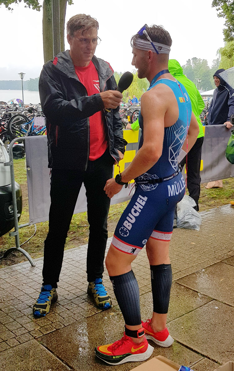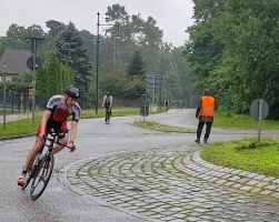 Die Badewasser-Temperaturen hatten sich auf Neo-taugliche 21 Grad abgekühlt, und Wellen gab es nicht – auf die Weise gab es freie Sicht auf die großen gelben Bojen, die der ausrichtende TV Fürstenwalde im See platziert hatte. Wie üblich war die Wechselzone auf der großen Schwanenwiese. Die Radstrecke war wegen einer Baustelle um den alpinen Anstieg zur Marienhöhe gekürzt und betrug daher nur gut 18 km pro Runde.