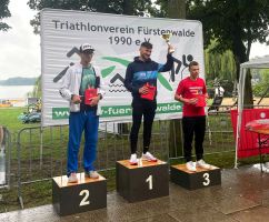 Sprint: 0,75 - 18,5 - 5 km; 59 Frauen und 128 Männer am Start Pl Name Verein AK Pl gesamt swim T1 bike nach bike T2 run ===================================================================================================================== 1 Katharina Groß BSV Friesen W25 1 1:16:53 12:08( 2) 1:12( 2) 39:46( 7) 53:06( 1) 0:52( 3) 22:55( 2) --------------------------------------------------------------------------------------------------------------------- 1 Maximilian Müller Sisu Berlin M25 1 1:03:59 10:50( 5) 1:14( 9) 32:19( 2) 44:23( 1) 0:57( 6) 18:39( 2) 2 Thomas Gogolin MSV Tripoint FFO M45 1 1:05:45 13:34(21) 1:22(15) 31:19( 1) 46:15( 2) 1:03(11) 18:27( 1) 3 Lawrence Ribak TV Fürstenwalde mJun 1 1:10:18 11:03( 6) 0:58( 1) 34:37( 5) 46:38( 3) 1:10(25) 22:30(18) =====================================================================================================================