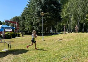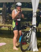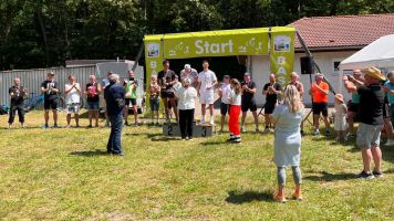 Somit geht es in den abschließenden Lauf – drei Runden ums Schwimmbad. Die haben es aber in sich: über eine Wiese, leichter Anstieg, ein Stückchen Waldweg und mehrere Spitzkurven. Nach der ersten Runde rufe ich meinem Mann scherzhaft zu "wird heute knapp". Er antwortet verwundert: "Die ersten kamen jetzt erst vom Rad". Ich versuche dennoch ambitioniert weiter zu laufen, eine Helferin ruft mir zu "Das sieht nach Leidenschaft aus." Ist es auch.