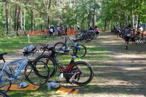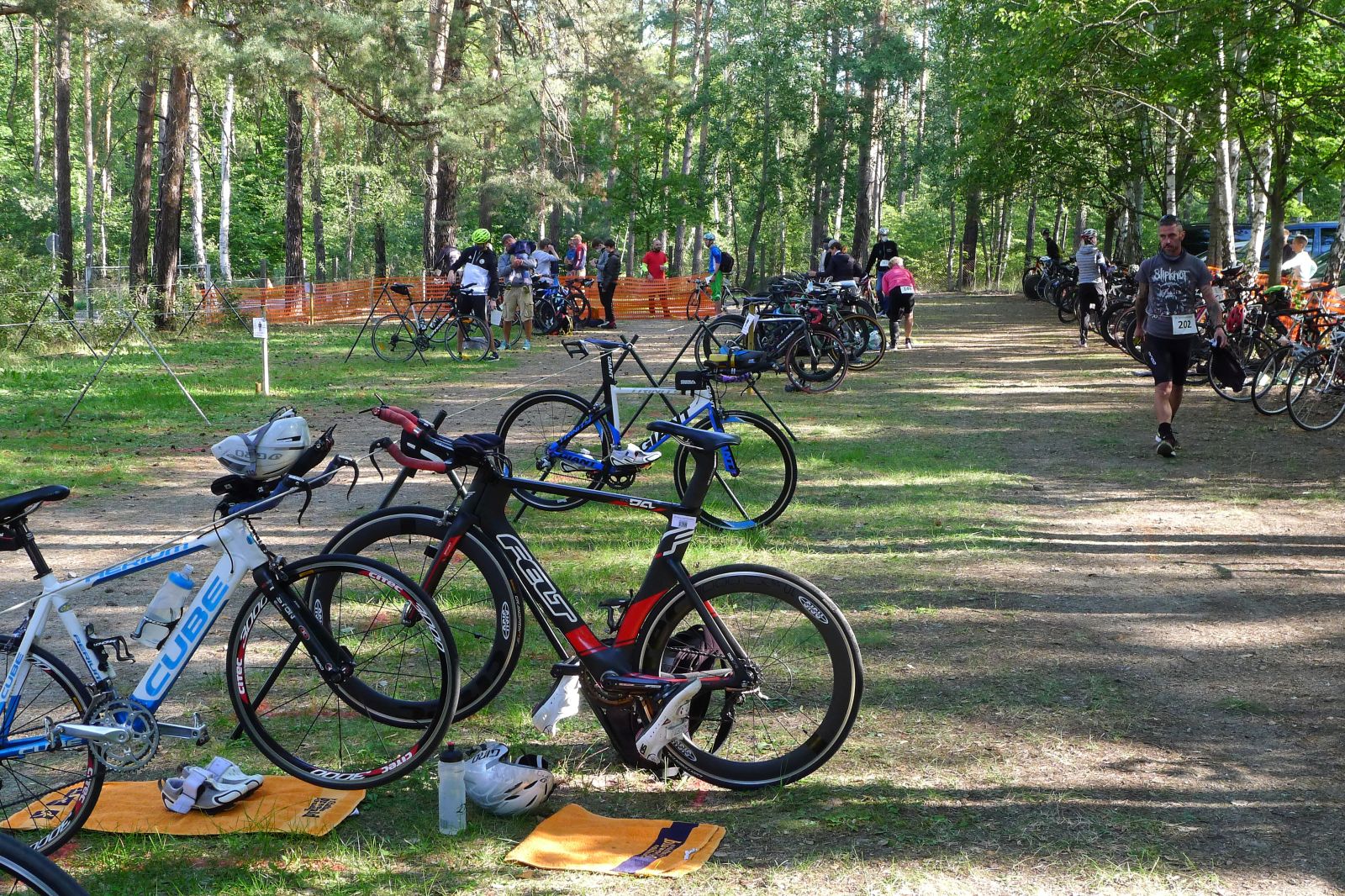 Der kurze Duathlon war bei Sisu dieses Jahr in Frauenhand, ich durfte aber mitmachen. Da ich zurzeit eigentlich Radfahrer bin, erschien mir das ganze Unterfangen fast schon etwas gewagt, zumal der Sprint-Duathlon dieses Mal deutlich lauflastig war (sonst haben wir nur 2 km im abschließenden Lauf – die Laufstrecke war sogar ca. 5,3 km lang). Aber egal, heute ging es zumindest für mich nicht um Platzierungen. In der Wechselzone ging es wirklich recht entspannt zu, es war genug Platz für alle. Im 3-Sekunden-Abstand wurden wir ab 11 Uhr in selbstgewählter Reihenfolge auf die Strecke geschickt, rein in den Wald und über Schotter und Sand.