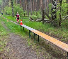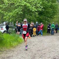 Für mich soll es vor allem eine ambitionierte Trainingseinheit werden, entsprechend langsam geht es auf die Laufstrecke. Alle anderen sprinten förmlich davon, und so bin ich schon bald recht einsam unterwegs, obwohl ich genau mein angepeiltes Tempo laufe. Die Strecke finde ich im Vergleich zum Triathlon, wo alles trocken und sandig war, richtig schön: saftiges Grün und Vögelzwitschern. Leider habe ich fast die ganze Zeit kalte Hände. Aber wer hätte gedacht, dass man im Mai noch mit Handschuhen laufen könnte.