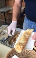 Für mich ist die Streckenlänge heute schon Herausforderung genug. Nach knapp 70 Kilometern steuern wir unseren ersten Versorgungspunkt an. Es ist reichlich voll, aber ich kann mit etwas Kuchen Energie tanken. Dann geht es in gewohnter Runde weiter, wobei Antje richtig reinhaut. Mist, sie hat den anderen Kuchen genommen! Überhaupt übernehmen Anna und Antje die meiste Führungsarbeit, wir dahinter beruhigen uns mit einem "die waren auch auf Mallorca". In Straupitz gibt es lecker Plinse und die Hälfte der Strecke ist bald geschafft. Allerdings muss ich auch an Position zwei oder drei auf Grund des Seitenwindes ziemlich kämpfen. Mich rettet ein Halten beim Queren einer Hauptstraße und so bin ich weiter hinten im Feld. Da wird zwar ziemlich chaotisch gefahren, aber es ist doch deutlich geschützter.