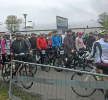 So ergab es sich, dass wir uns ein paar Minuten bevor sich die 1300 Radler auf die Strecke machen, nahe dem Start treffen. Christian sehe ich noch kurz, er hofft eine gute Gruppe zu finden. Dass soll ihm auch gelingen, denn er wird die Strecke im 35er Schnitt bewältigen. Antje und ich schließen uns einer Gruppe von Weltraumjoggern und Tri-Finishern an. So geht es langsam los, es dauert eine ganze Weile, bis das Feld in Fahrt kommt. Wir überholen noch ein paar größere Gruppen und schaffen uns dann schön zu formieren und den angekündigten 30er Schnitt zu erhalten. Anna und Antje sind dabei die Zugpferde, während sich die Männer in der Runde – und ich – noch etwas zurückhalten. Ich komme zwar auch alsbald in den Genuss, vorn zu fahren, halte das aber nicht lange aus – oder besser gesagt traue ich es mir nicht zu.
