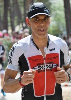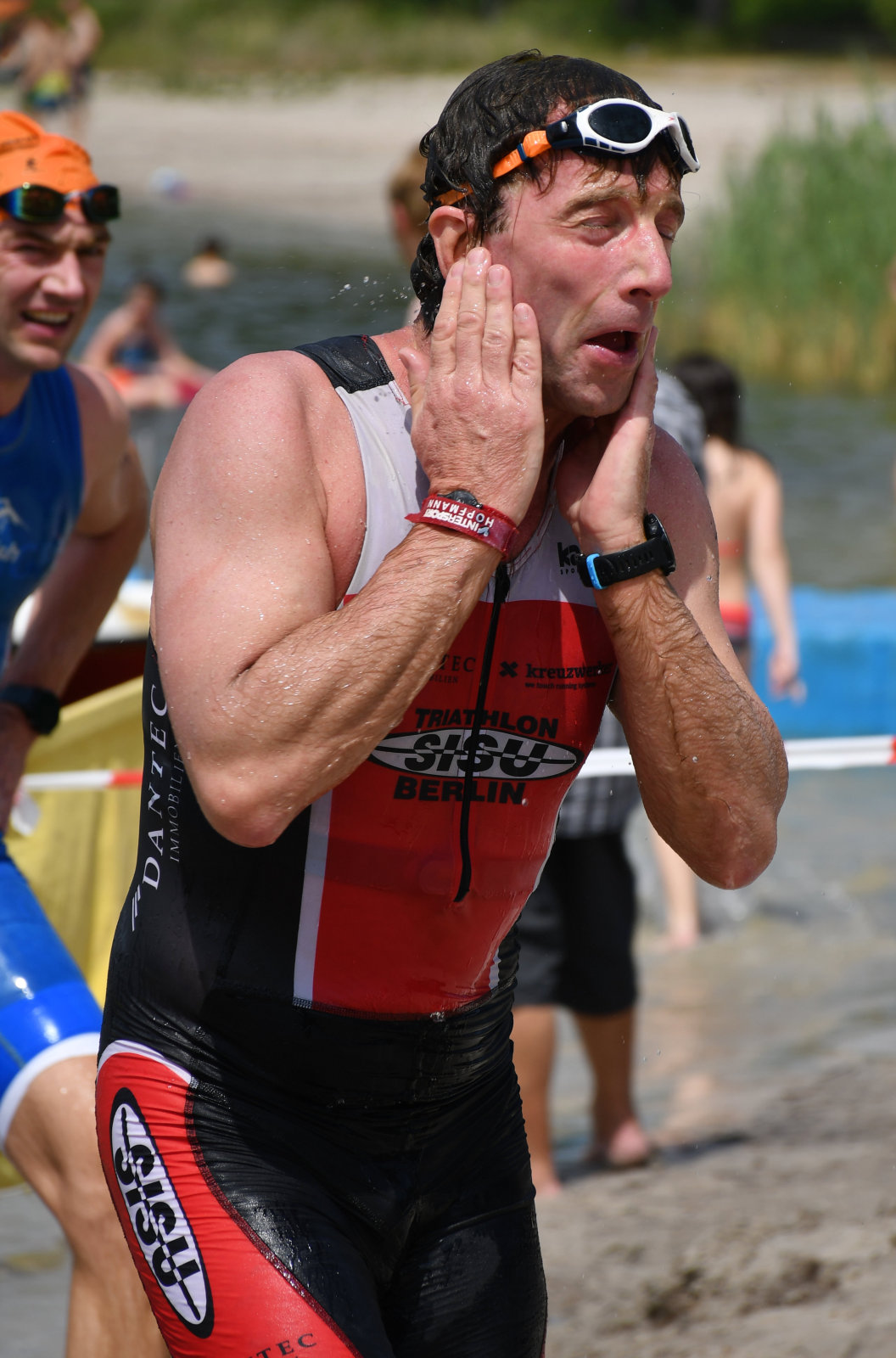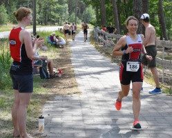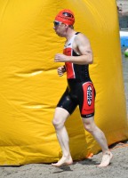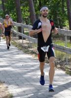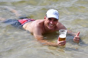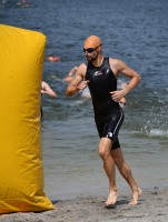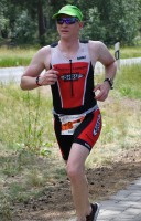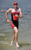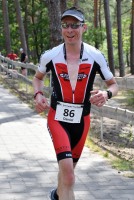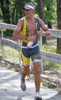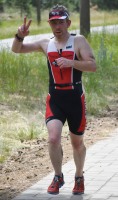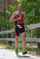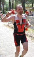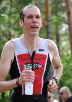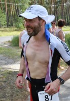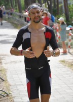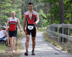 Die zwei Laufrunden um den See musste dann jeder so gut es geht durchbringen. An jeder Station trinken und Wasser strategisch auf den Anzug verteilen war absolut nötig, aber die Gesichter wurden immer röter mit der Zeit. So langsam war ich hier noch nie unterwegs. Auf der letzten Straßenpassage fasste ich wieder Mut und versuchte nochmal einen flotten letzten Kilometer. Das hat mich um 5 Sekunden vor Ingo ins Ziel gerettet, der mich offenbar schon eine Weile im Visier hatte!