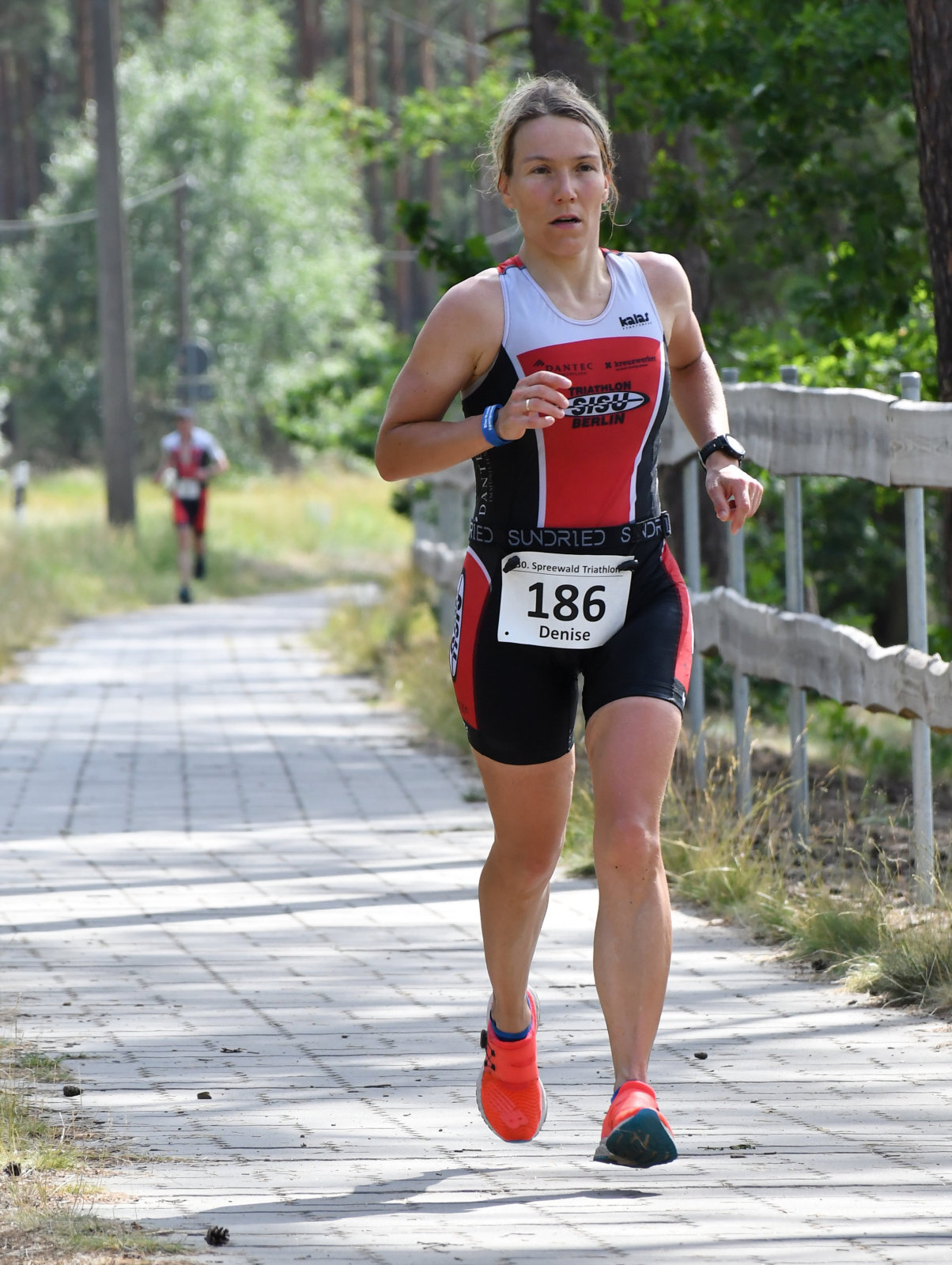 Denise war (ich versuche das an der Tabelle zu erkennen) nach dem Schwimmen auf Position 4, nach dem Radsplit bereits auf dem Bronzeplatz, da kommt die gleimäßige Leistung in allen drei Disziplinen zum Tragen. Diesen Platz konnte sie dann bis zum Ende halten – Gesamtpodium und, wie sich herausstellte, gleichzeitig Sieg in der Berlin-Brandenburger Meisterschaftswertung, die ersten beiden waren von auswärts. Großer Glückwunsch!