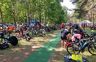 Wenn ich wieder einen Wettkampf mache, dann soll es sich auch lohnen, dachte ich mir. Deshalb habe ich mich direkt zur Mitteldistanz angemeldet. Diese wurde im Vergleich zu den Vorjahren etwas angepasst, angelehnt an dem bereits letztes Jahr ausgetragenen Duathlon. Die Schwimmstrecke wurde auf 1500m verkürzt, damit sie auch von jenen bewältigt werden kann, die kein Schwimmen trainiert haben. Außerdem wurde die Laufstrecke von den 4x5km um den See auf zwei 9km Runden durch den Wald verlegt.