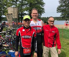 Nach den letzten gemeinsamen Jahren als Dienstagsfahrer (wir konnten regelmäßig gemeinsam am Dienstagvormittag entweder mit dem MTB oder dem Rennrad eine Ausfahrt machen) starteten Sven, Christopher und ich unter diesem Namen als einzige Sisu-Mannschaft beim Team Tri auf der Sprintstrecke. Sarah fand bei uns nicht genügend Mitstreiterinnen und verstärkte darum das Damenteam der Friesen. Aber es gab sportliche Konkurrenzveranstaltungen mit der Mecklenburger Seenrunde (herzlichen Glückwunsch an die Herren, die gemeinsam mit einem 33er-Schnitt die 300 km-Runde hinter sich brachten) und der Lichtenrader Meile. Sven freute sich, nicht schwimmen zu müssen, und Christopher und ich waren von der kurzen Laufstrecke sehr angetan. Die Generalprobe im Mannschaftszeitfahren ging in die Hose, es konnte also nur besser werden.
