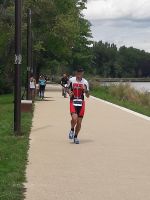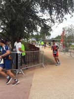 Der Lauf ging flach über 4 Runden an dem Fluss entlang, wo morgens geschwommen wurde. Ich hatte im Vorfeld ein Hitzerennen befürchtet, in den Tagen zuvor wurde auch an der 30 Grad-Marke gekratzt. Am Renntag ging er aber mit unter 25 Grad. Ich kam flüssig in Tritt und fühlte mich mit 4:45er Zeiten pro km gut. Das Tempo konnte ich lange halten und bin nicht wie häufiger zuletzt ab etwa der Hälfte eingegangen. Nur bei den letzten etwa 5 km musste ich etwas nachgeben. Am Ende aber mit einer 3:28er Zeit ging der Lauf besser als bei den letzten Langdustanzen (auch wenn nach GPS wohl etwa 500 m gefehlt haben).