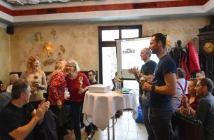 Nach unseren guten Erfahrungen letztes Jahr haben wir wieder in der "Eierschale" am U-Bahnhof Podbielskiallee in Dahlem gefeiert, erstmal an einem Sonntag, in diesem Jahr der zweite Advent. Offenbar ist Sonntag gut, wir sind wiederum mehr geworden mit gut 80 Sisus und Angehörigen. Wir hatten einen wirklich netten Tag, so viele Sisus sind sonst nie an einem Ort!