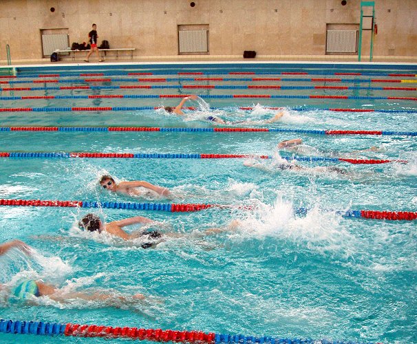 Die Morgenstund hatte mal wieder Gold im Mund. Knackig kalt wars in der Nacht, aber der Tag verhieß Sonne pur und Temperaturen bis zu 5 Grad. Morgens um acht flutete Sonnenlicht durch die großen Fenster der alten Halle an der Finckensteinallee. In 4 Wellen gingen die Schwimmer an den Start. Nana sorgte als gestandene Roth-Finisherin für eine Schwimmzeit, die Team SuDiBe bei weitem nicht zustande gebracht hätte. Wir würden also in der vorderen Hälfte des Feldes auf die Radstrecke gehen.