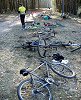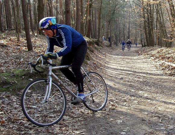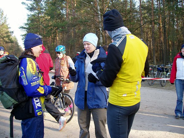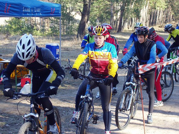 Die Radstrecke präsentierte sich in gutem Zustand. Die Kälte der Nacht hatte die wenigen matschigen Stellen fest werden lassen. Die größeren Wege waren trocken und griffig, nur der Sand auf dem Reitweg im hinteren Teil der Strecke war tief wie eh und je. Auf dem Kilometerberg waren die LKW-Spuren ebenfalls festgefroren – ein wenig Vorsicht war also angebracht bei der Abfahrt. Nachdem die "Kleinen" ihr Rennen beendet hatte, gingen alle anderen im Abstand der Schwimm-Rückstände auf die Strecke.