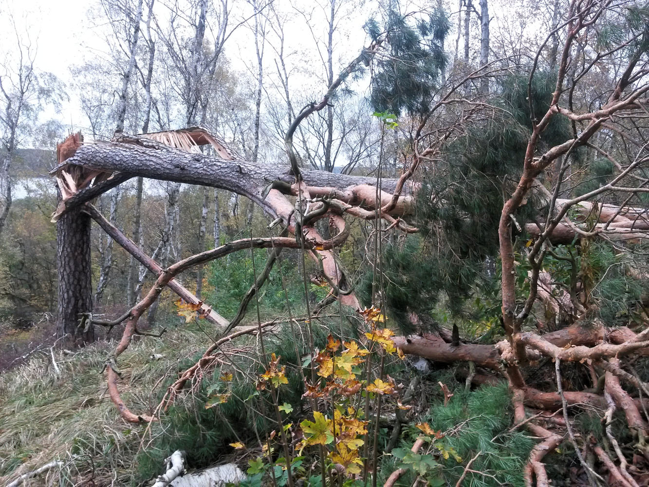 Der Wald ist im großen und ganzen gut befahrbar. Heute war de Untergrund nach einem Sonnentag schön fest und kaum matschig. Wegen der beiden Stürme der vergangenen Wochen liegen mehr Äste herum als sonst, und es liegen stellenweise noch Bäume über den kleineren Wegen. Die Hauptwege sind praktisch alle geräumt. Alle Abfahrten und schnelleren Passagen sollten auf Sicht gefahren werden.