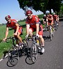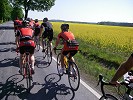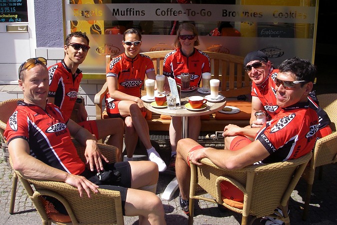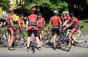 Anfangs, also vor ca. 2 Jahren, waren wir ein ziemlicher Haufen, in dem nur jeder zweite überhaupt Gruppenerfahrung hatte und viele gruppendienliche Verhaltensweisen erst eingeübt werden mussten (Zeichen geben, gleichmäßig fahren, sinnvoll rotieren). Die Leistungsansprüche waren und sind natürlich unterschiedlich, doch irgendwie hat man sich ein wenig aneinander gewöhnt, außerdem kann jedes in Sicht kommende Ortsschild ersprintet werden, und die Langstreckler fahren teilweise vorher oder hinterher noch ein Zusatzschleife. Abgesehen davon muss natürlich nicht jeder jede Woche kommen. Weiteren Feinschliff werden wir uns hoffentlich noch erarbeiten!