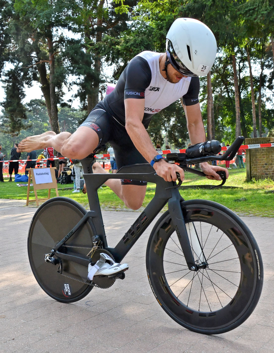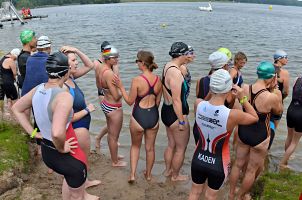 Bei den Männern ging es da durchaus gemischter zu. Während der Sieger Frank Mirbach, der mit dem mit Abstand besten Radsplit alles klar machte, bereits der "fortgeschrittenen" Altersklasse M55 angehört, kämpften die jüngeren Altersklassen um jede Sekunde und die weiteren Podiumsplätze, die letztlich an Luis Radstaak (Jugend B) und Simon Raimund (M35) gingen. Die Mehrzahl der Teilnehmerinnen und Teilnehmer in diesem Wettbewerb stellen sich der Herausforderung ohne Vereinstraining, für manche ist es sogar der einzige Triathlon im Jahr. So finden sich hier wie auch im Sprint-Wettkampf erfreulich viele "Ortsansässige" unter den Startenden.