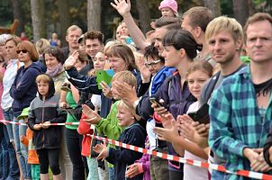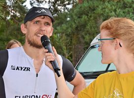 Ganz ungewohnt für den Kallinchen-Triathlon zeigte sich das Wetter heute eher von der verhaltenen Seite. Deswegen sahen manche der Jungen und Mädchen beim Kindertriathlon auch schon etwas verfroren aus, als sie kurz vor halb neun bereits von der Schwimmstrecke kamen und ihre Räder bestiegen. Offenbar tat das aber dem Wettkampfeifer keinen Abbruch, und schon gut zehn Minuten nach dem ersten Start konnten wir mit Richard Schiefelbein und Thalia Stach den ersten Sieger und die erste Siegerin des heutigen Tages im Ziel begrüßen. In dichter Folge ging es weiter, und nach zwanzig Minuten hatten alle Teilnehmer/innen des Kindertriathlon das Ziel erreicht. Glücklich mit den Eltern wiedervereint konnten sie das Erlebte verarbeiten, während es für die nächsten Startwellen langsam ernst wurde.