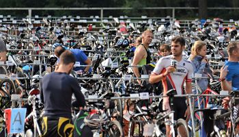 Auch in der Wechselzone war wieder eine breite Palette von Strategien zu beobachten: Während die einen Radabstellen, Helmabsetzen und Laufschuhanziehen fast im Durchlaufen erledigten, ließen sich andere erst einmal behaglich nieder, um Socken zu wechseln, einen Happen oder einen Schluck aus der Trinkflasche zu sich zu nehmen und das Laufkäppi zu richten. Am Ende mussten sie alle drei Runden durch Kallinchen laufen und dabei jedes Mal den steilen Anstieg der Ringstraße erklimmen.