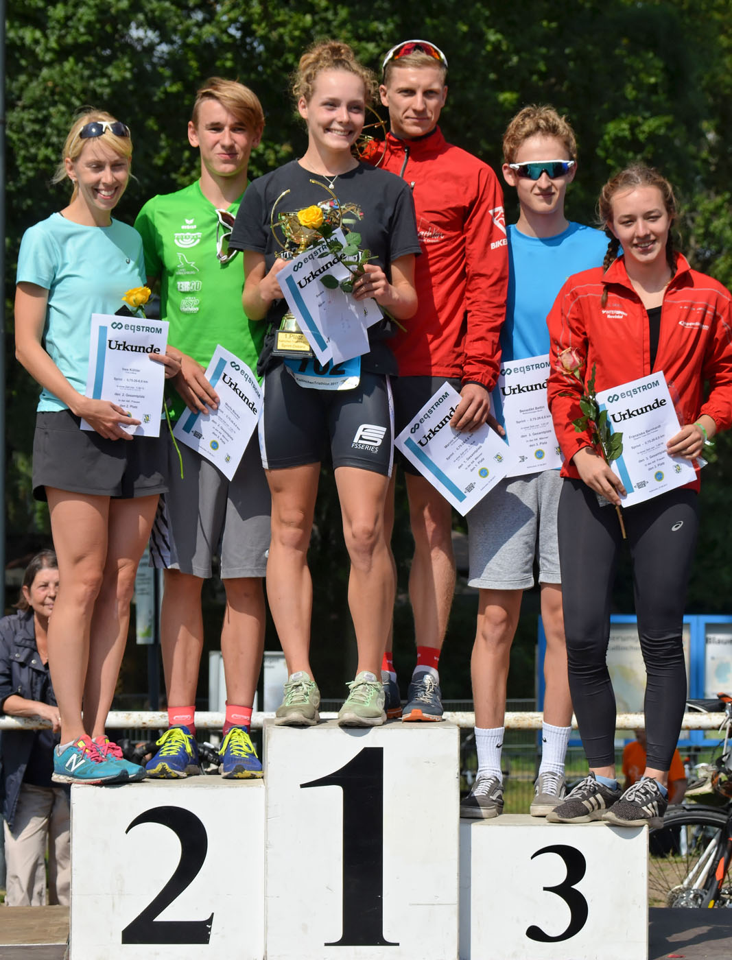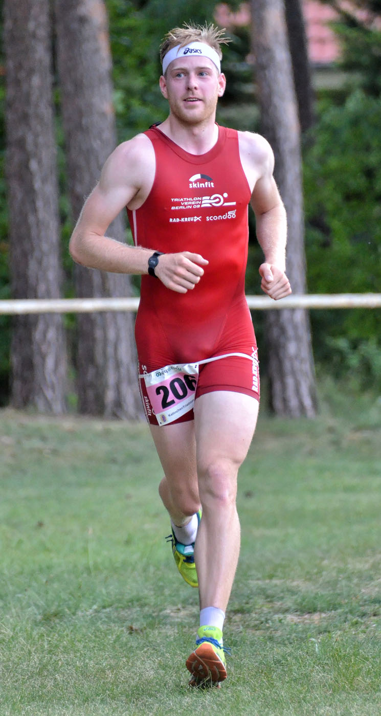 Mit ausgeglichen starker Schwimm-, Rad- und Laufleistung sicherte sich Marvin Wetzk (TV Dresden) mit komfortablem Vorsprung den Sieg vor den Verfolgern der hier jüngsten startberechtigten Altersklasse Jugend A: Moritz Blanke (Triathlon Team Potsdam), der die beste Schwimmzeit erreichte, auf Platz 2, Benedikt Bettin (Weltraumjogger) auf Platz 3 und Erik Skalitz (TuS Neukölln) mit Laufbestzeit auf Platz 4.