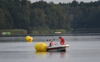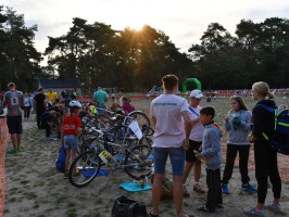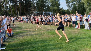 Der 28. Kallinchen-Tri fand wiederum bei schönstem Spätsommer mit bis zu 30 Grad statt. Infolge des warmen Wetters hatte der See ganz knapp über 22 Grad gemessenene Wassertemperatur, so dass auf allen Srecken ohne Neoprenanzug geschwommen werden musste. Bei wenig Wind und nach lauer Nacht musste aber niemand am Strand frieren. Zum ersten Start kam langsam die Sonne heraus, Kallinchen und der Motzener See zeigten sich von ihrer schönsten Seite. Die am Vortag aufgebaute Wechselzone füllte sich langsam bis zum letzten Platz.