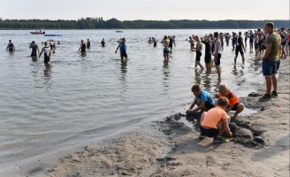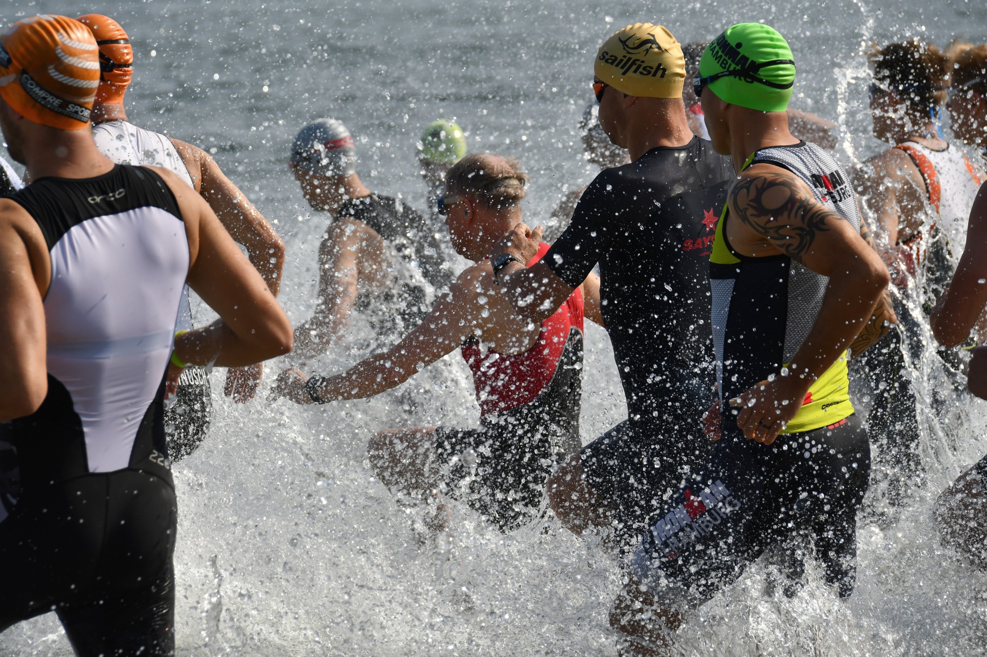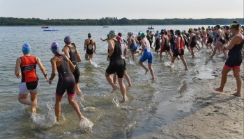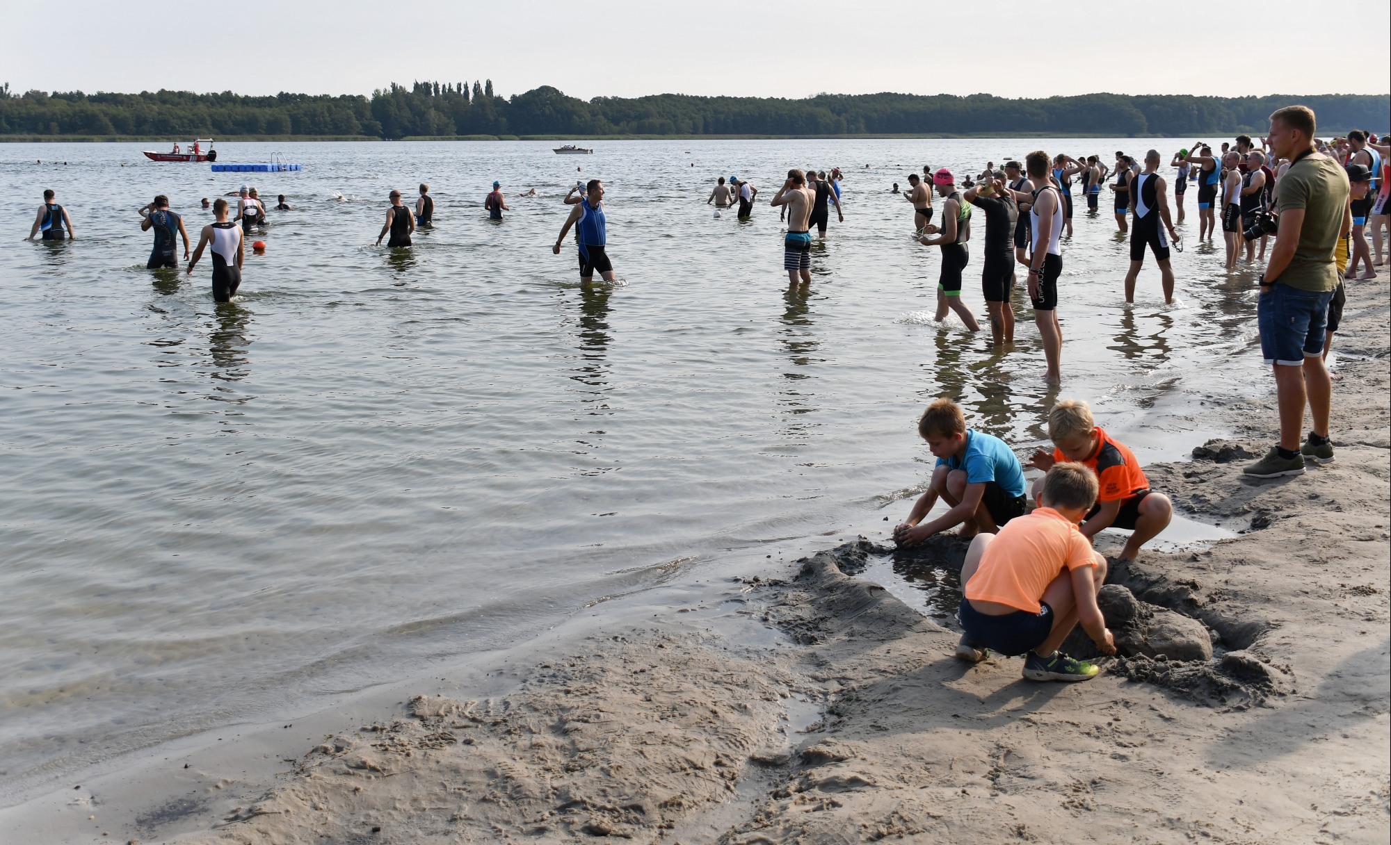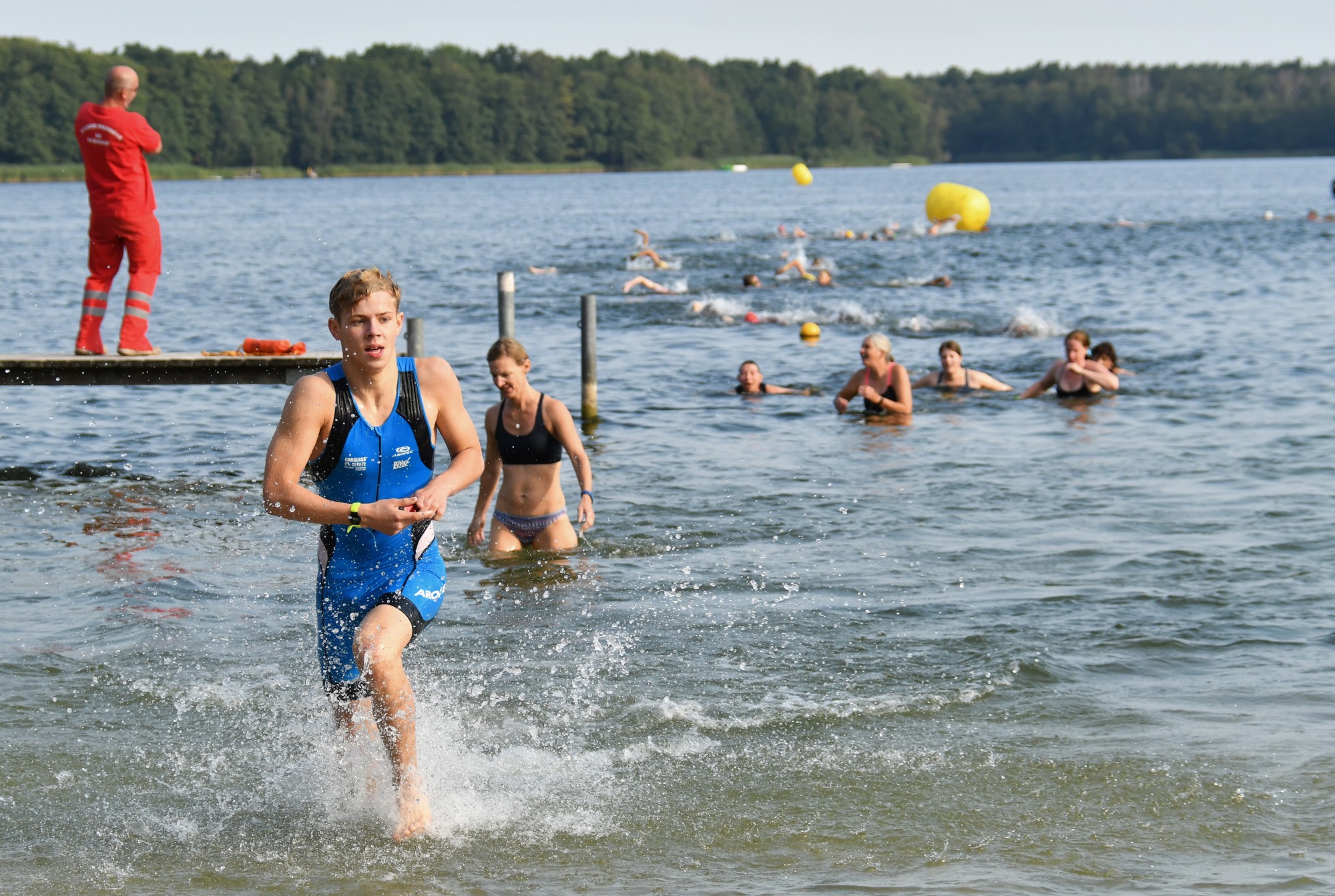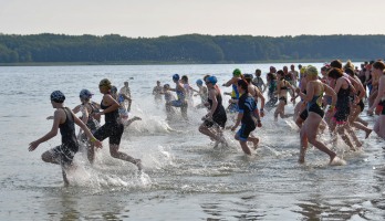 Gut 350 Teilnehmerinnen und Teilnehmer gingen beim Sprint auf die Strecke, die unter Nutzung der bekannten Rad- und Laufrunden ein langer Sprint ist mit 26 Rad- und 6,6 Laufkilometern. Da dieses Jahr ohne Neoprenanzug geschwommen wurde, war aber auch die 750 Meter-Schwimmrunde durchaus anspruchsvoll.