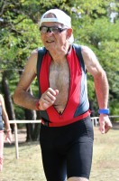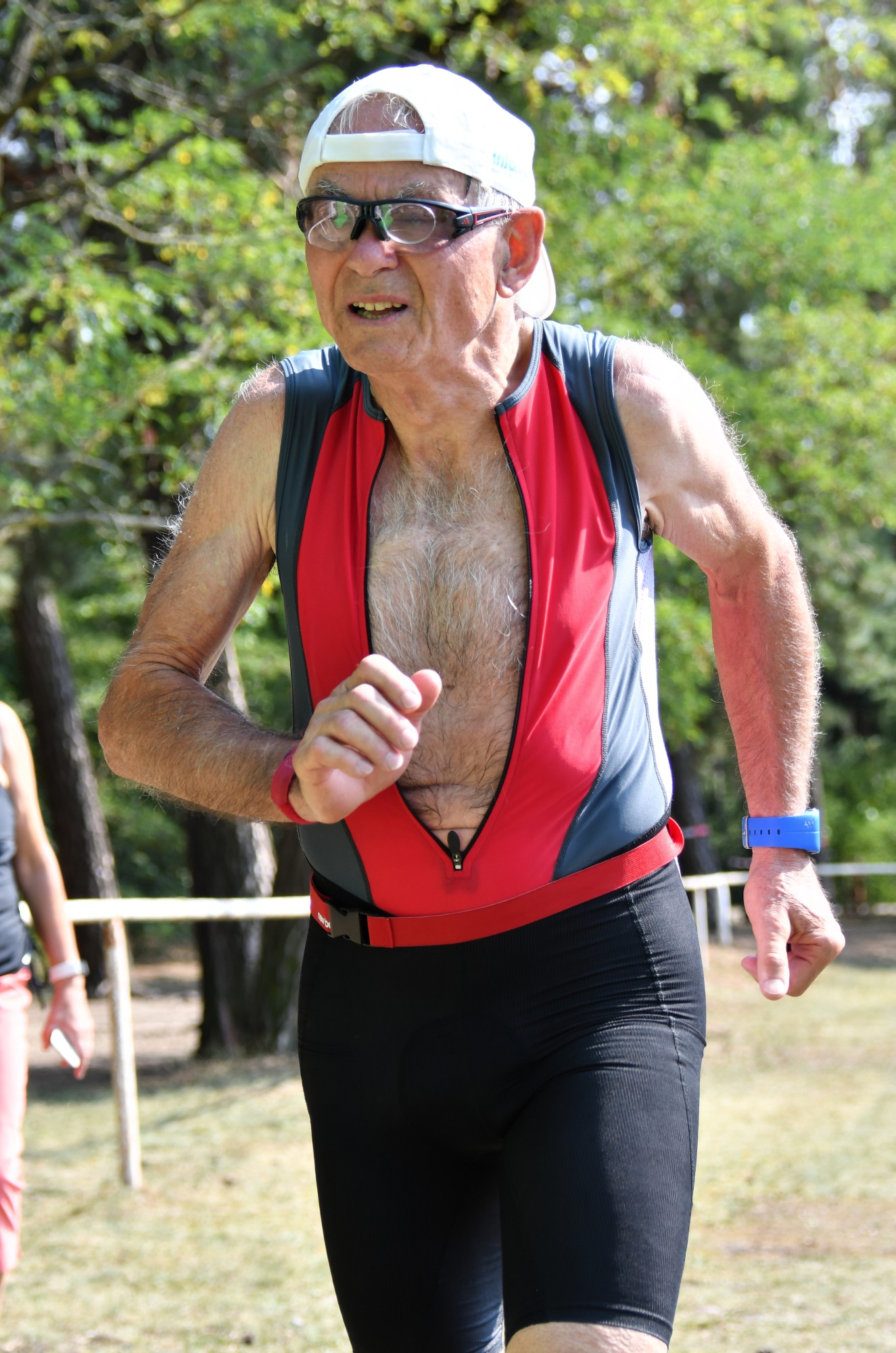 Zu guter letzt kam noch unser ältester Teilnehmer Henner Koepenick ins Ziel, von dem man munkelte, er würde sich nach diesem Auftritt mit 79 Jahren nun in den Triathlon-Ruhestand zurückziehen. Er bekam seine eigene Eskorte auf der Laufstrecke und wurde bei seinem Zieleinlauf nach den Siegerehrungen ausgiebig bejubelt.